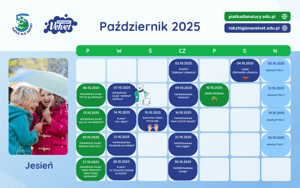 W tym miesiącu naszym motywem przewodnim jest właśnie zdrowy uśmiech 😁. Polecamy m.in. Papierowanki „Dynie” 🎃, „Drzewo” 🌳 oraz scenariusz zajęć „Zdrowy uśmiech” 🦷. To oczywiście tylko część naszych propozycji – czeka na Was jeszcze więcej ciekawych materiałów!
