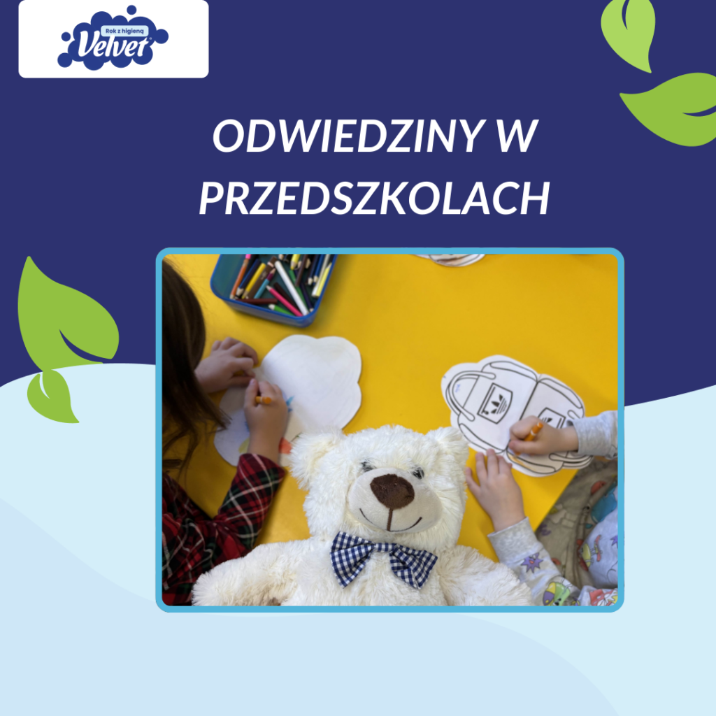 Miś Velvetuś uwielbia podróże i chętnie odwiedza przedszkola w całej Polsce, by dzielić się swoją wiedzą! W styczniu przygotował coś wyjątkowego – będzie opowiadał dzieciom, jak dbać o higienę młodego sportowca!